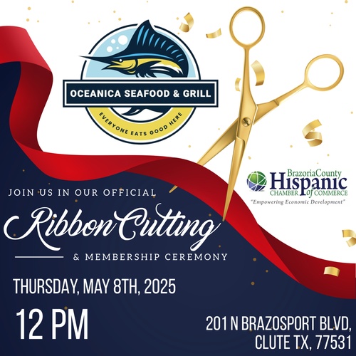 BCHCC invites you to join us as we celebrate Oceanica Seafood & Grill with an official Ribbon Cutting Ceremony. Although they’ve only been open a short time, Oceanica has already become a favorite in the Clute area, known for their fresh seafood, welcoming service, and inviting atmosphere.