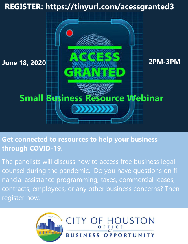 Access Granted! Join us for a webinar series on how to access resources during COVID-19. This June 18th edition will focus on how to obtain free legal counsel.